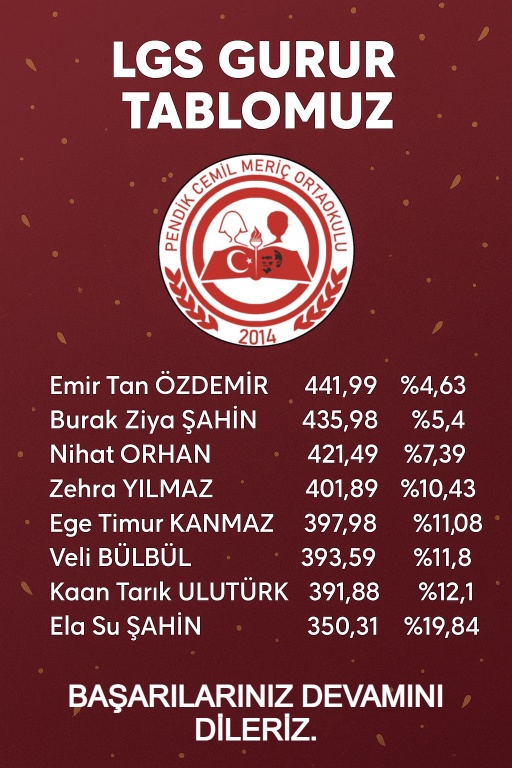 LGS'de bizi gururlandıran öğrencilerimizi tebrik eder ve başarılarının devamını dileriz.